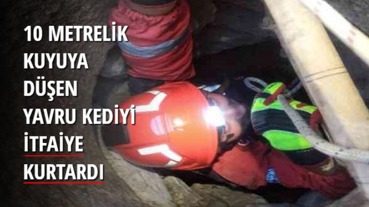 10 METRELİK KUYUYA DÜŞEN YAVRU KEDİYİ İTFAİYE KURTARDI