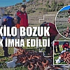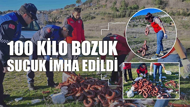 Yol kenarına atılmış yaklaşık 100 kilo etiketsiz ve bozuk sucuk ekiplerin incelemesinin ardından imha edildi.