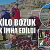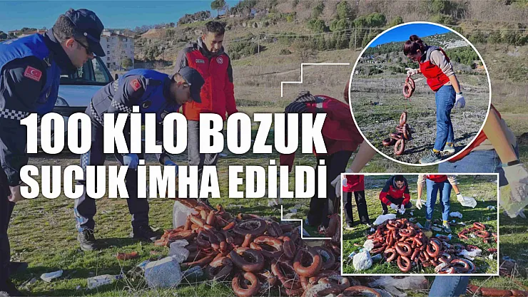 Yol kenarına atılmış yaklaşık 100 kilo etiketsiz ve bozuk sucuk ekiplerin incelemesinin ardından imha edildi.
