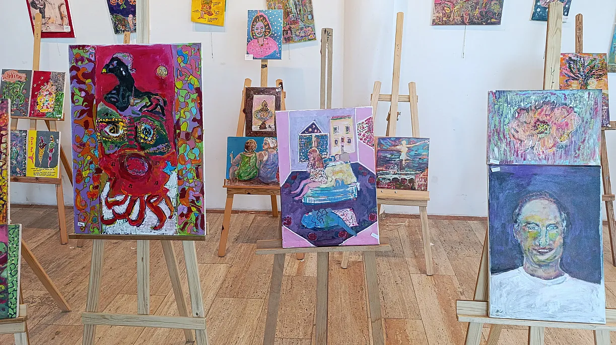 Muğla'nın Fethiye ilçesinde 14 yıldır ikamet eden İngiliz Anna Cristina, Fethiye Özer Olgun Kültür Merkezi'nde son 2 yılda yaptığı resim çalışmalarını satışa çıkarmak amacıyla sergi açtı.
