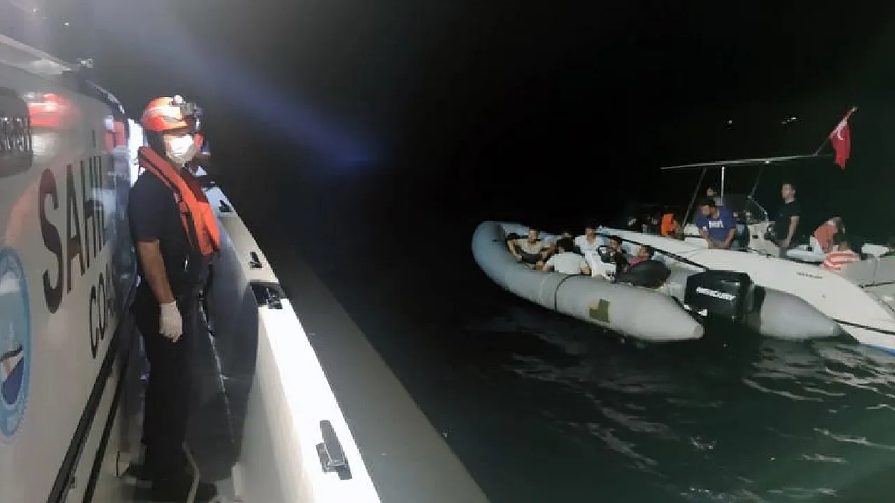 Seydikemer ilçesi açıklarında lastik bot içinde düzensiz göçmenler olduğu bilgisini alan Sahil Güvenlik ekipleri bölgeye kurtarma botu sevk etti. Hareket halindeki lastik bot içinde 18 düzensiz göçmen yakalandı,
