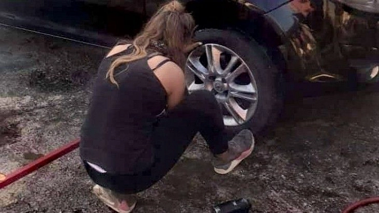 18 yaşındaki Duygu, lastik tamir edip, balans ayarı yapıyor
