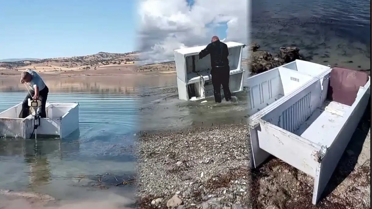 Abdülmetin Çökmez, hurda buzdolaplarına motor taktırarak yaptığı kayıkla Koyunbaba Barajı'nda gezintiye çıkıyor. Yaklaşık 1 ay önce yaptığı kayıkla barajda turlayan Çökmez, görenlerin hayret dolu bakışları arasında keyifli anlar yaşıyor.