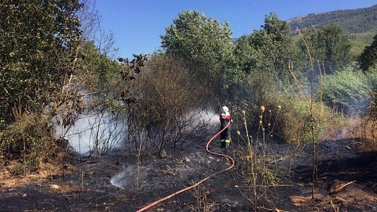 Yatağan Bencik Mahallesinde çıkan ot yangınında 2 hektar alan içindeki ot ve ceviz ağaçları zarar gördü.