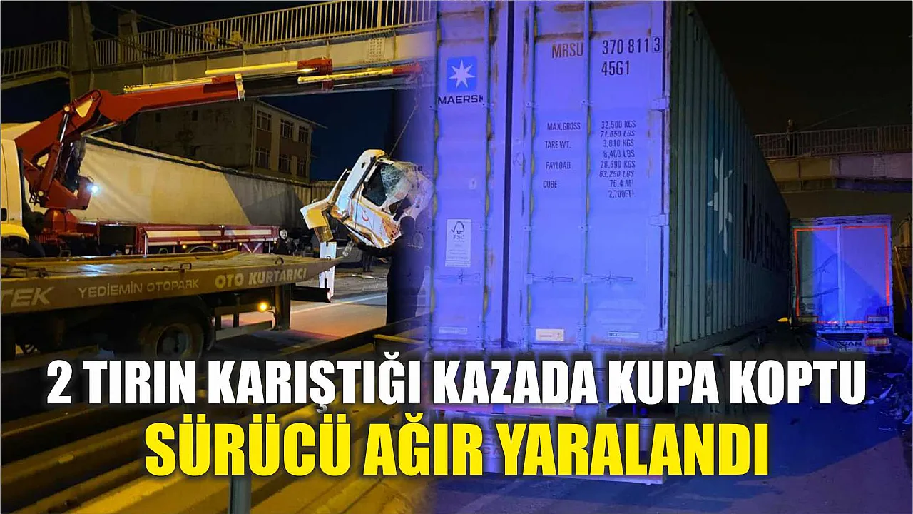 2 aracın karıştığı kazada tırın kupası koptu. Tırda sıkışarak ağır yaralanan sürücü vatandaşlar tarafından çıkarıldı.