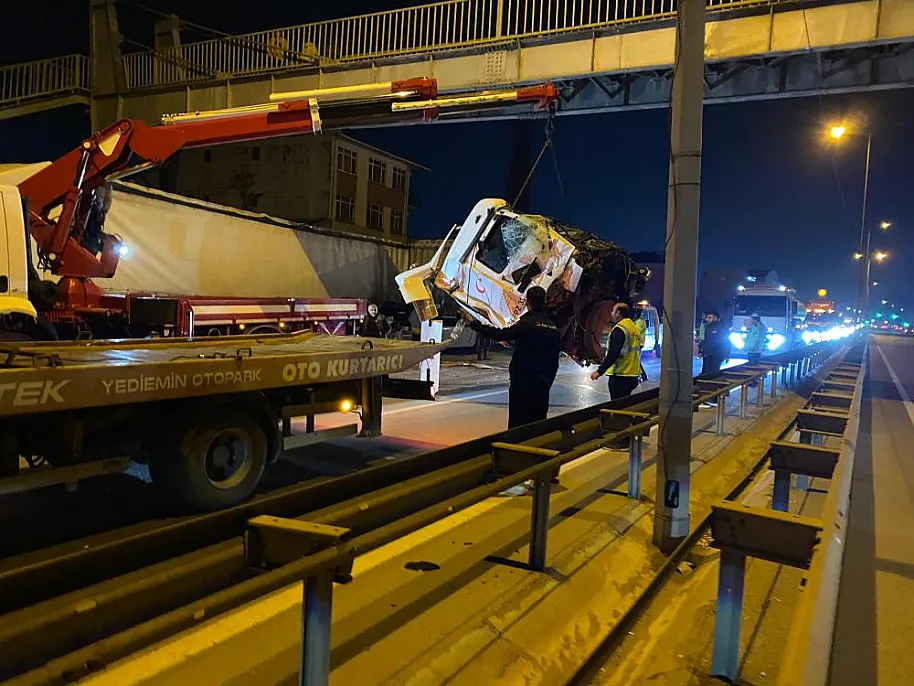 2 aracın karıştığı kazada tırın kupası koptu. Tırda sıkışarak ağır yaralanan sürücü vatandaşlar tarafından çıkarıldı.
