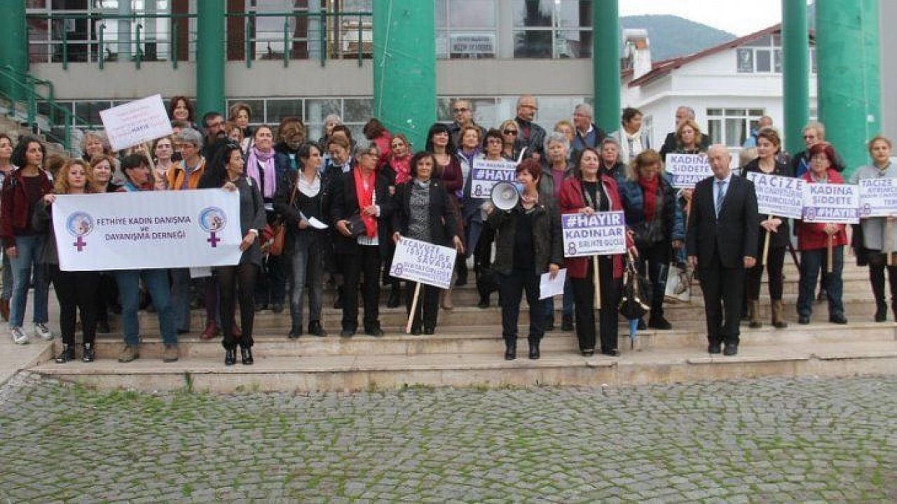 Fethiye Belediyesi Özer Olgun Kültür Merkezi önünde gerçekleştirilen basın açıklamasına CHP Fethiye Kadın Kolları Başkanı Ayşe Kestep, Fethiye Belediye Başkan Vekili Muharrem Akalın, sivil toplum kuruluşları başkan ve üyeleri ile Fethiye Kadın Danışma ve Dayanışma Derneği Başkan ve üyeleri katıldı.