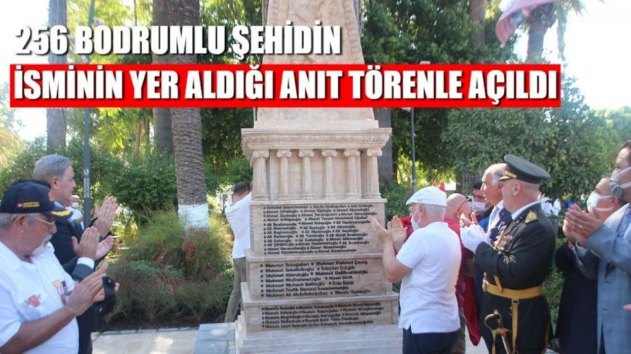 Çanakkale Savaşı, İstiklal Savaşı, Dumlupınar Denizaltısı, Kıbrıs Barış Harekatı ve terörle mücadelede şehit olan 256 Bodrumlunun ismi, belediye binası önünde Bodrum Belediyesi ve Türkiye Muharip Gaziler Derneği Bodrum Şubesi’nin ortak çalışmasıyla yaptırılan 4 metre uzunluktaki “Şehitlik Anıtı”nda yaşayacak. Gazi Mustafa Kemal Atatürk, Kara Fatma, Seyit Onbaşı ve Mehmetçik kabartmalarının yer aldığı ve ilçede bulunan dünyanın 7 harikasından biri Halikarnas Mozolesi’nden esinlenerek yapılan anıt için 30 Ağustos Zafer Bayramı etkinliğinin ardından bir açılış töreni gerçekleştirildi.
