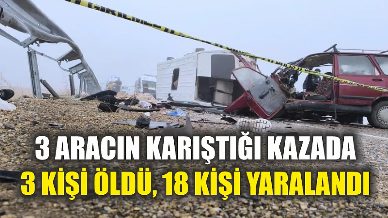 Yoğun sis nedeniyle biri servis minibüsü olmak üzere 3 aracın karıştığı trafik kazasında ilk belirlemelere göre, 3 kişi hayatını kaybederken, 18 kişi de yaralandı.