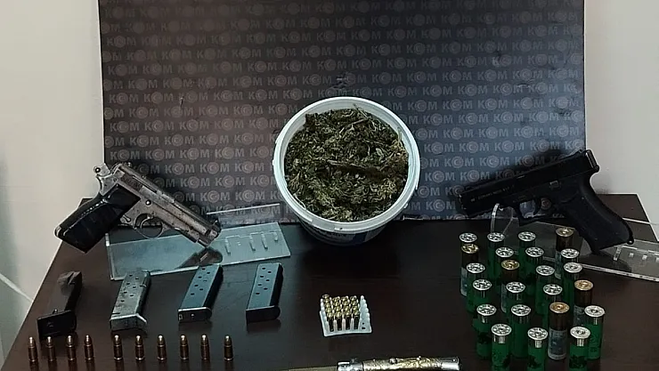 Operasyon kapsamında; 2 silah, 1 kurusıkı tabanca, 3 şarjör, 190 gram esrar maddesi, 23 kartuş, 21 tabanca fişeği ve 1 sustalı bıçak ele geçirildi.