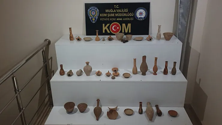 Muğla KOM Şube Müdürlüğü Fethiye Kaçakçılık ve Organize Suçlarla Mücadele Büro Amirliği tarafından, meydana gelebilecek tarihi eser kaçakçılığı ile ilgili yapılan çalışmalarda 38 tarihi eser ele geçirildi.