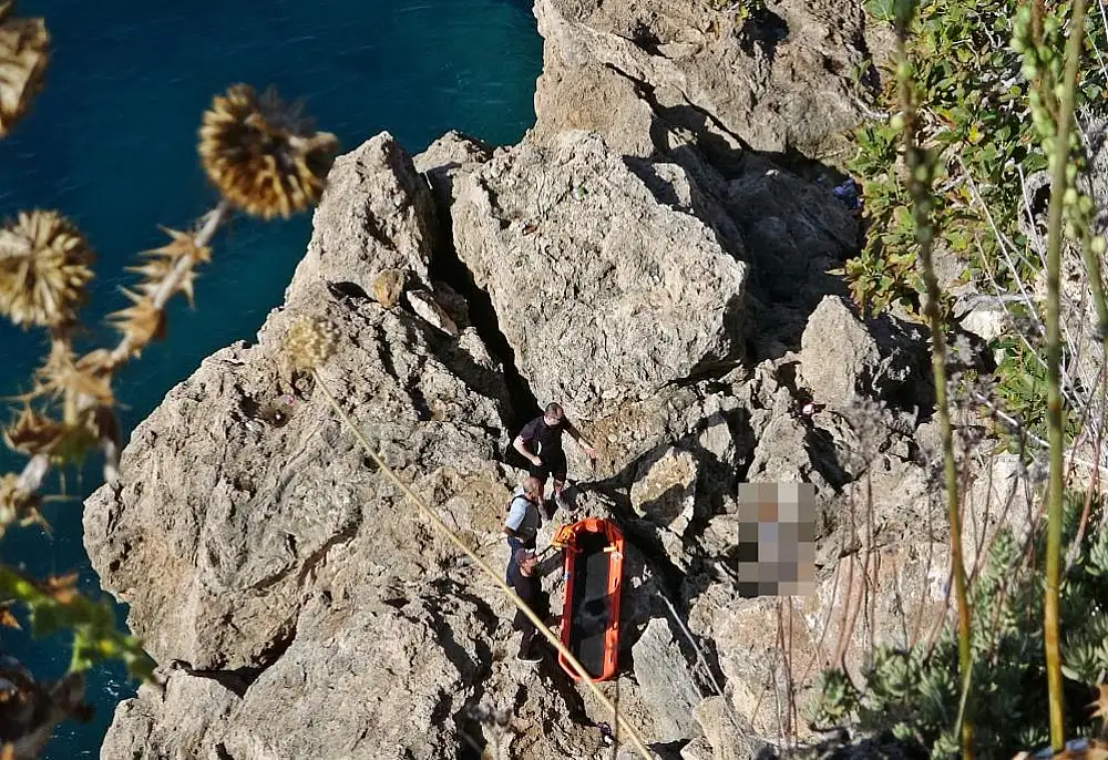 Antalya’da dört çocuk babası 44 yaşındaki adam falezlerdeki kayalık alanda ölü bulundu. Ölüm haberini duyan kardeşinin "abim ölmüş" feryatları yürekleri yakarken, cenaze 25 metre yükseklikten 2 saatlik operasyonla alındı. Operasyonu yüzerek açıldıkları denizden izleyenler ise deniz polisi ve sahil güvenlik ekiplerince uyarıldı.