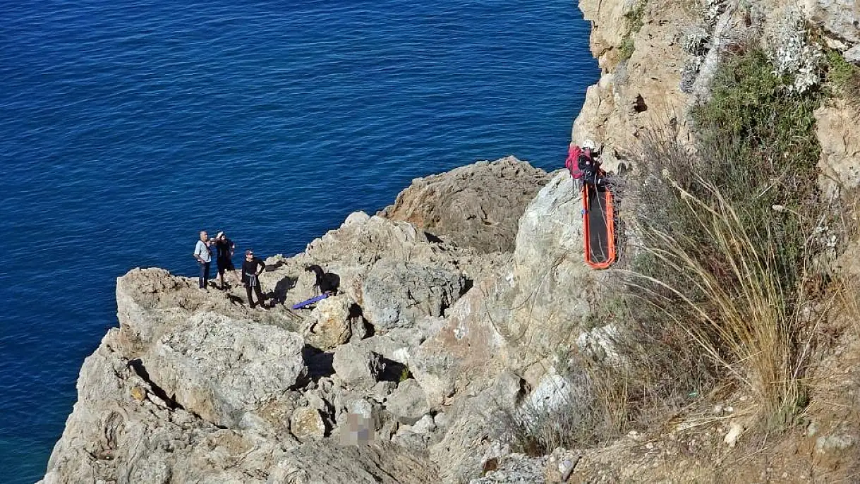 Dört çocuk babası 44 yaşındaki adam falezlerdeki kayalık alanda ölü bulundu. Ölüm haberini duyan kardeşinin 'abim ölmüş' feryatları yürekleri yakarken, cenaze 25 metre yükseklikten 2 saatlik operasyonla alındı. Operasyonu yüzerek açıldıkları denizden izleyenler ise deniz polisi ve sahil güvenlik ekiplerince uyarıldı.