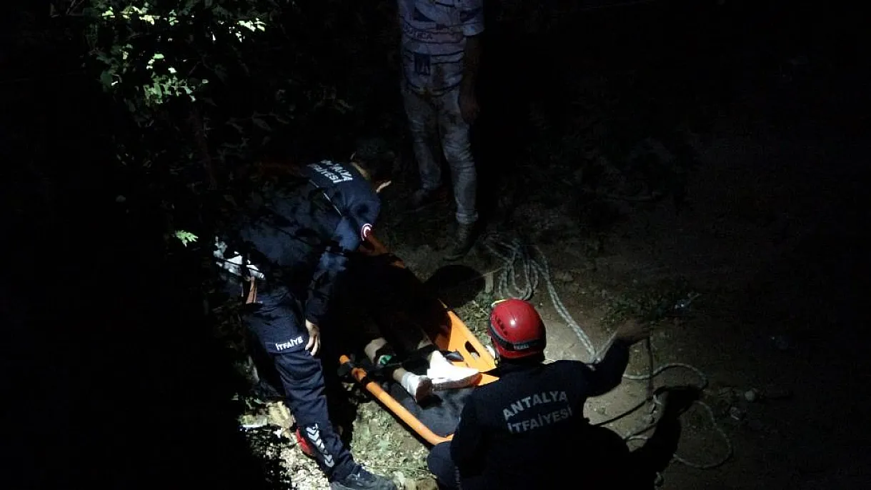 Yol kenarındaki yaklaşık 4 metrelik inşaat çukuruna düşen kadın turist yaralandı. Yaralı kadın, itfaiye ekipleri tarafından kaşık sedyeye alınıp halatla çukurdan çıkartıldı.