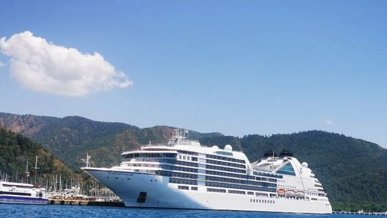 210 metre uzunluğunda, 28 metre genişliğinde lüks yüzen otel Seaborn Encore, 480 yolcusu ile Muğla’nın Marmaris ilçesi Gümrüklü Limanı’na demir attı.