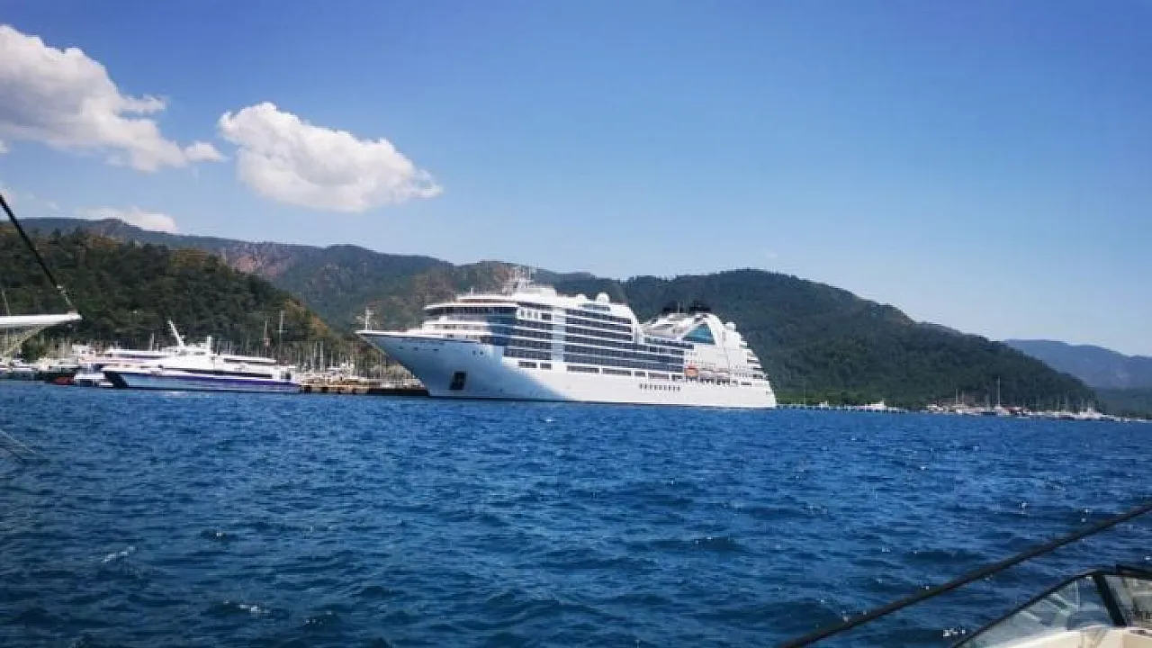 210 metre uzunluğunda, 28 metre genişliğinde lüks yüzen otel Seaborn Encore, 480 yolcusu ile Muğla'nın Marmaris ilçesi Gümrüklü Limanı'na demir attı.