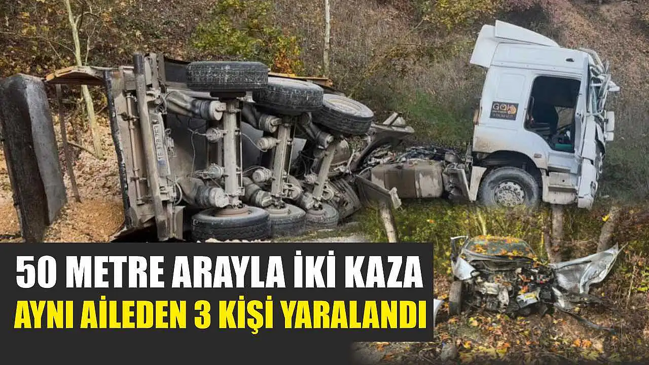 Bursa-Orhaneli Yolu üzerinde meydana gelen iki ayrı kazada biri bebek olmak üzere aynı aileden 3 kişi yaralandı. Kazalar, yalnızca 50 metre arayla gerçekleşti.