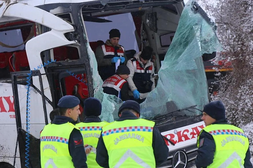 Meydana gelen kazada 6 kişinin öldüğü, 3'ü ağır 33 kişinin yaralandığı otobüsten geriye enkazı ve yolcuların etrafa saçılmış eşyaları kaldı.