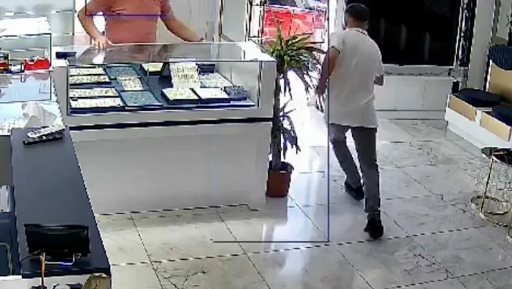 Bir sarrafa girerek, 77 bin TL değerinde ziynet eşyasının fotoğrafını çekmek bahanesiyle eline alıp, kaçan şahıs polis ekipleri tarafından yakalandı. Olay anı anbean kameralara yansıdı.