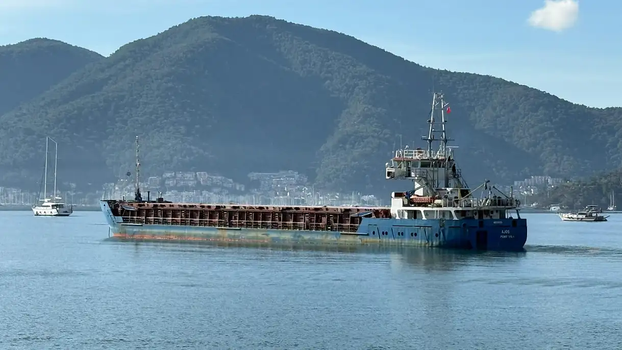 1996 yılında Vanuatu ülkesinde inşa edilen, 88 metre uzunluğunda ve 11 metre genişliğe sahip genel kargo gemisi olarak geçen AJOS, Fethiye Körfezi'nde görüldü.