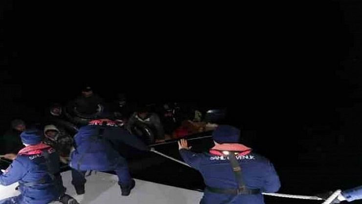 Muğla'nın Bodrum ilçesi açıklarında sürüklenen lastik bot içerisindeki 9 düzensiz göçmen kurtarıldı.