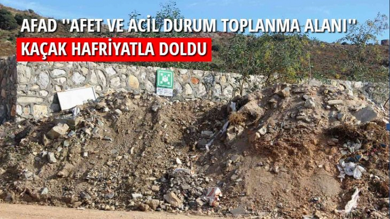 Muğla'nın Bodrum ilçesinde afet durumlarında, Afet ve Acil Durum Yönetim Başkanlığı (AFAD) tarafından 'Afet ve acil durum toplanma merkezi' olarak belirlenen alan kaçak hafriyatla doldu. Tonlarca hafriyatın tüm alana döküldüğü hatta toplanma alanının girişini bile kapattığı görüldü.