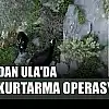 Muğla'nın Ula ilçesi Kıyra Mahallesinde sarp kayalıklarda mahsur akalan iki keçi için AFAD ekipleri kurtarma operasyonuna çıktı.