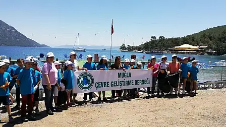 Menteşe-Milas sınırlarında bulunan ve menengiç ağaçlarının katledildiği Akbük Koyu'nda, gönüllüler tarafından kıyı temizliği yapıldı.