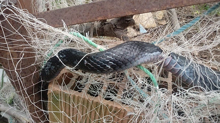 Ağlara takılan kara yılan itfaiye ekiplerini seferber etti