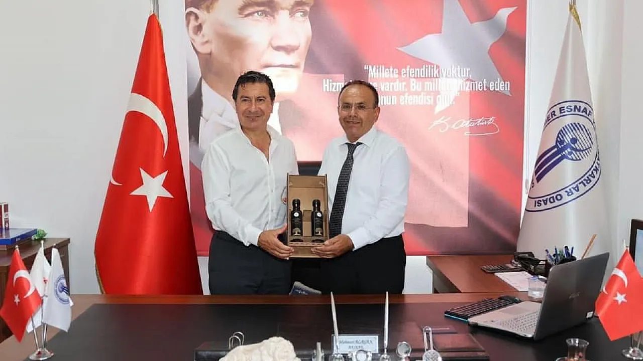 Muğla Büyükşehir Belediye Başkanı Ahmet Aras, Seydikemer Esnaf ve Sanatkarlar Odası Başkanı Mehmet Alaşan'ı ziyaret etti.