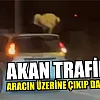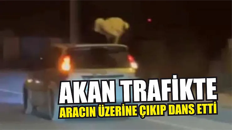 Bir şahsın seyir halindeki otomobilin üzerine çıkıp dans ettiği anlar kameraya yansıdı.