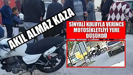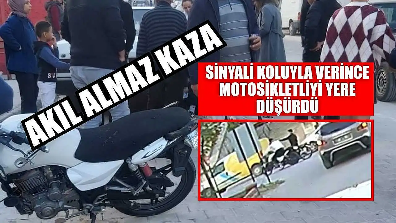 Akıl almaz kaza: Sinyali koluyla verince motosikletliyi yere düşürdü