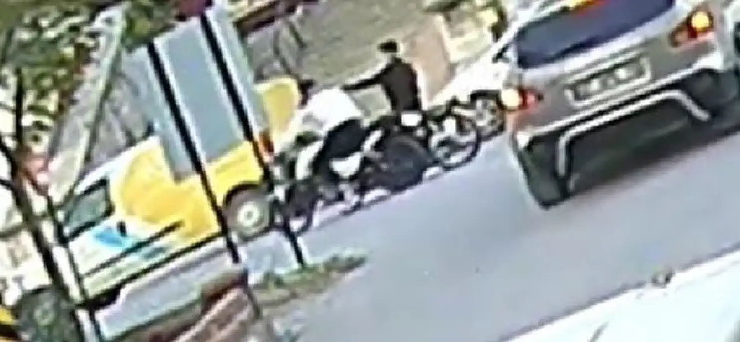 Meydana gelen sıra dışı motosiklet kazasının güvenlik kamerası görüntüleri ortaya çıktı. Cadde üzerinde faaliyet gösteren bir işletmenin güvenlik kameralarına yansıyan görüntülerde, dönüş yapmak için yavaşlayan siyahlı motosikletlinin yön belirmek için kolunu aldırması ve bu sırada yandan geçmeye çalışan beyazlı motosikletlinin kola çarparak yere düştüğü anlar yer aldı.
