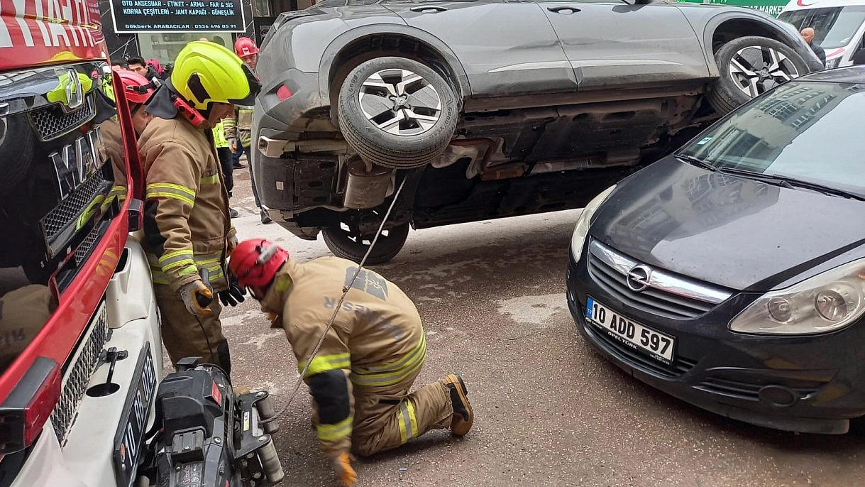 Bandırma'da 10 ARD 860 plakalı SUV model araç, sürücüsünün kontrolünü kaybetmesi sonucu park halindeki bir otomobilin üzerine çıkarak yan durdu. Kazayı görenler şaşkınlıklarını gizleyemezken, olay yerine hızla Balıkesir Büyükşehir Belediyesi Bandırma itfaiye ekipleri sevk edildi. Araç içinde sıkışan sürücü, ekiplerin titiz çalışmasıyla güvenli bir şekilde çıkarıldı. Trafik ekipleri de olay yerinde güvenlik önlemleri alarak kazanın nasıl meydana geldiğini incelemeye başladı.