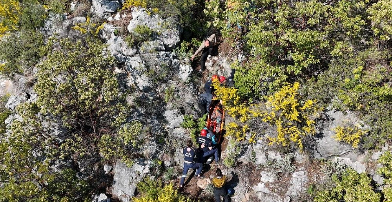 Antalya'nın Alanya ilçesinde paraşütle havalanan bir kişi, alçak uçuş yaptığı esnada makilik alana paraşütünün takılması sonucu düşerek yaralandı. Dağda mahsur kalan kişi, ekiplerin başarılı operasyonuyla kurtarılırken, o anlar dron kamerası ile görüntülendi.