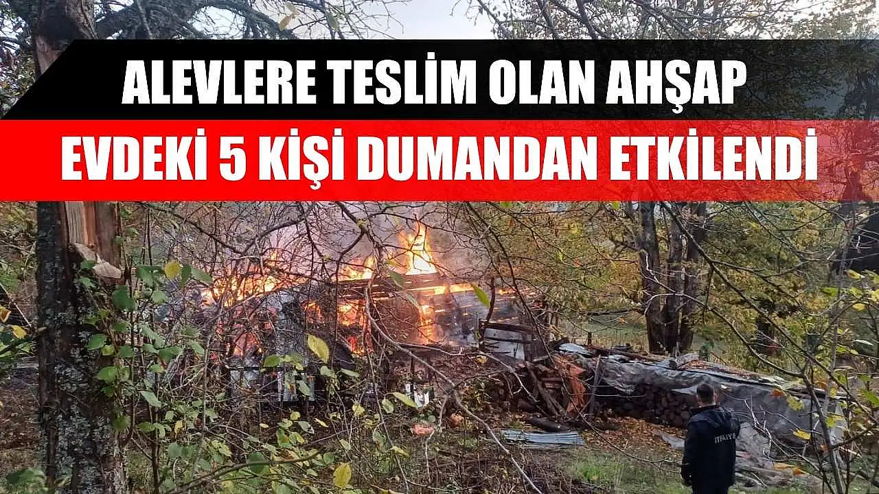 Alevlere teslim olan ahşap evdeki 5 kişi dumandan etkilendi
