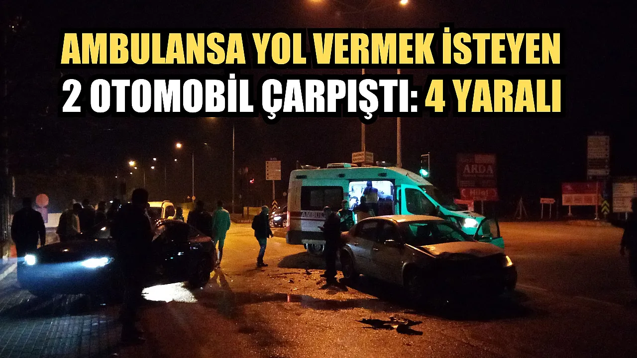 Ambulansa yol vermek isterken 2 otomobil çarpıştığı kazada 4 kişi yaralandı.