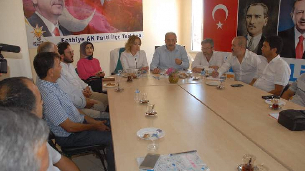 AK Parti Muğla Milletvekili Yelda Erol Gökcan, Muğla İl Başkanı Kadem Mete ve Fethiye İlçe Başkanı Kadir Sarıhan, ilçe teşkilatında düzenlenen toplantıda muhtarların sorunlarını dinlerken, gazetecilere açıklama yapan Milletvekili Gökcan ve İl Başkanı Mete; Fethiye'yi yerel seçimde Ak belediyecilik ile tanıştıracaklarını söylediler.