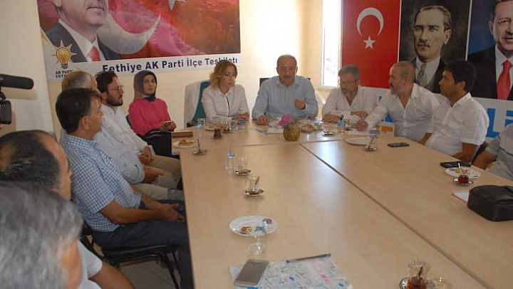 Fethiye'nin 41 mahalle muhtarlarının katıldığı toplantıda muhtarlar bir birsöz alarak sorunlarını aktardılar. Daha çok yol, su ve elektrik problemlerinin öne çıktığı muhtarlarla yapılan toplantıda Fethiye'nin ilk yerel seçimde Ak belediyecilikle tanışacağı vurgulandı. Ak Parti Muğla İl Başkanı Kadem Mete muhtarların sorunlarını dinlerken "Var olan sorunlar genelde belediyelerin yetkisi alanında olan yol, su ve asfalt gibi sorunlar. 6 ay gibi kısa bir süre kaldı, biz bu sorunları çözeriz" dedi. AK Parti Muğla Milletvekili Yelda Erol Gökcan ise "Bu dönem Fethiye'de yerel seçimlerde iddialıyız ve Fethiye Belediye Başkanlığını alacağız. İşi erbabına bıraksınlar" derken; İlçe Başkanı Kadir Sarıhan da ''Amacımız sorunları takip edip, çözmek. Görüyoruz ki Ak Parti iktidarı olarak hemen pek çok sorunu çözmüşüz. Yerel yönetimlerin çözmesi gereken sorunları da ilk seçimde Belediye Başkanlığını da kazanıp çözeceğiz'' ifadelerini kullandı.