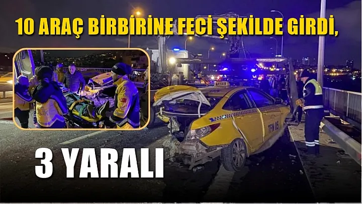 15 Temmuz Şehitler Köprüsü'nde gece saatlerinde meydana gelen kazada önce 5 araç birbirine girdi. Köprünün ters şeridinde ise kazayı izlemek için yavaşlayan bir ticari taksiye arkadan başka bir araç çarptı. Kazaya karışan araçları fark edemeyen diğer sürücülerin de duramaması sonucu toplam 10 araç birbirine girdi. İlk kazanın gerçekleştiği ticari takside sıkışan sürücü ve diğer araçlardan 2 kişi olmak üzere toplam 3 kişi yaralandı.