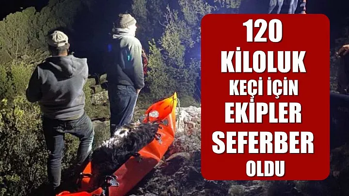 Dağda rahatsızlanan 120 kiloluk keçi için AFAD ve belediye ekipleri seferber oldu. 4 AFAD, 2 belediye personeli ve 2 vatandaşın katıldığı operasyonda keçi, sedye ile 7 saatte dağdan indirildi.