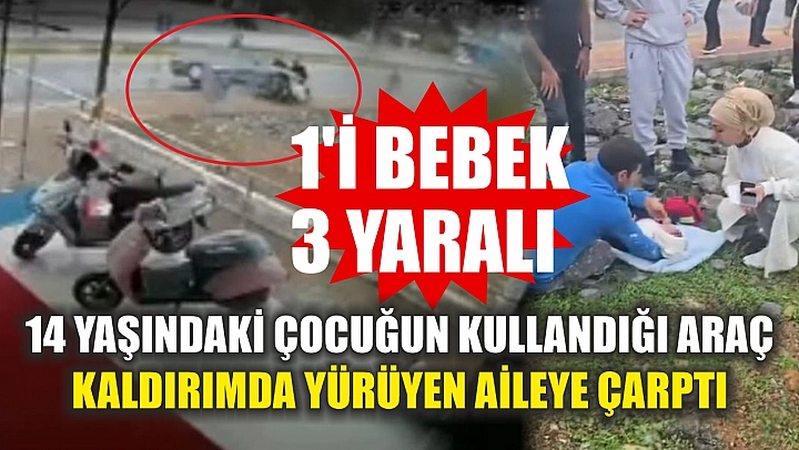 14 yaşındaki çocuğun kullandığı araç kaldırımda yürüyen aileye çarptı: 1'i bebek 3 yaralı