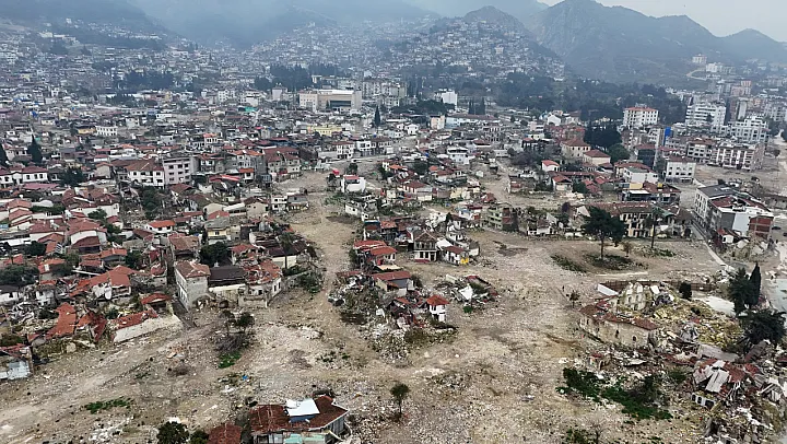Türkiye'nin 11 ilinde büyük yıkıma yol açan 6 Şubat depremlerinin birinci yıl dönümünde Hatay havadan görüntülendi. Onlarca mahallenin neredeyse yok olduğu kentte ayakta kalmayı başaran binaların üzerine sprey boyalarla yazılan “Mahkemelik ve az hasarlı” şeklindeki yazılar dikkat çekti. Havadan çekilen görüntülerde deprem nedeniyle hasar gören binaların çoğunun yıkıldığı görülüyor.