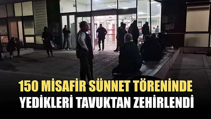 Katıldıkları sünnet töreninde ikram edilen tavuklu pilavı yiyen 150 misafir, mide bulantısı ve kusma şikayetiyle hastanelerin yolunu tuttu. Zehirlendikleri belirlenen şahıslar tedavilerinin ardından taburcu edilirken, yemeği hazırlayan aile tavukçudan şikayetçi oldu.