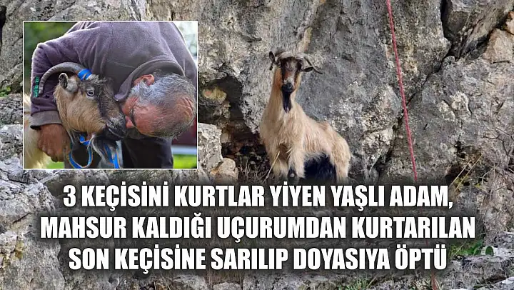 3 keçisini kurtlar yiyen yaşlı adam, mahsur kaldığı uçurumdan kurtarılan son keçisine sarılıp doyasıya öptü