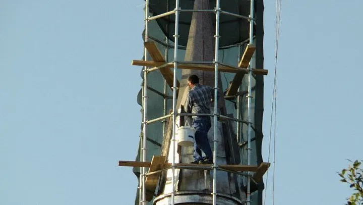 30 metrelik minarenin tepesinde tehlikeli çalışma