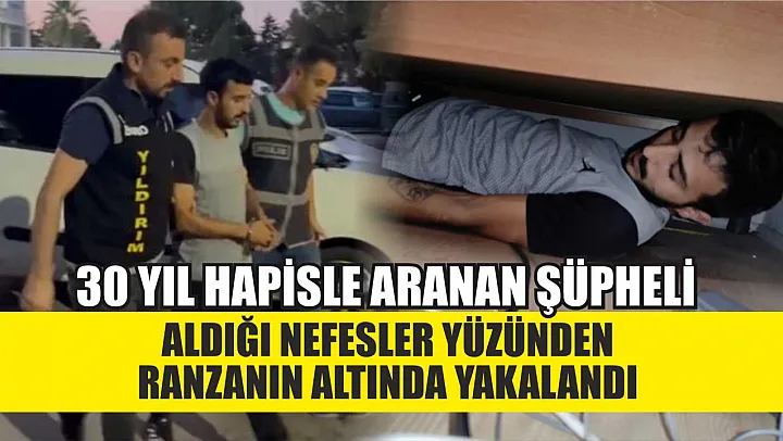 Bursa'da hakkında 30 yıl 1 ay 20 gün kesinleşmiş hapis cezası bulunan şüpheli, evindeki ranzanın altında kıskıvrak yakalandı. Zanlı, evine yapılan operasyonda ranzanın altında aldığı nefes sayesinde yakalanırken, şahsın emniyetteki işlemleri sürüyor.
