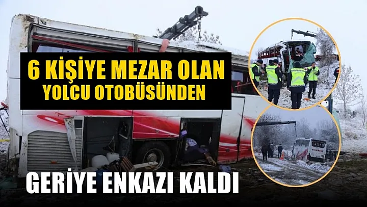 Meydana gelen kazada 6 kişinin öldüğü, 3'ü ağır 33 kişinin yaralandığı otobüsten geriye enkazı ve yolcuların etrafa saçılmış eşyaları kaldı.