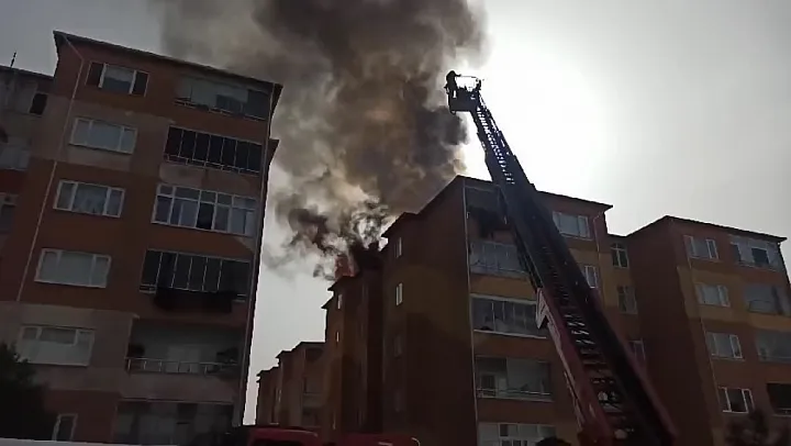 7 katlı apartmanın çatı katı alev alev yandı. İzolasyon çalışması esnasında çıkan yangın diğer apartmanlara sıçramadan itfaiye ekiplerince söndürüldü.