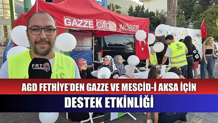 AGD Fethiye Başkanı İbrahim Kılıç, yaptığı açıklamada, 'Anadolu Gençlik Derneği Fethiye Temsilciliği olarak Gazze'nin yanında olduğumuzu, Mescid-i Aksa'nın hür ve özgür olduğunu somut olarak göstermek için Cuma, Cumartesi ve Pazar günleri Muğla ile Fethiye ilçesi Beşkaza Meydanı'nda Milli Gençlik Vakfı ve Anadolu Gençlik Derneği olarak fikir duvarımız, temsili somut gemilerimiz, resim ve sergimiz ile çocuklarımıza balonlar ve somut gemiyi destekleyici bileklikler dağıtıyoruz. Tüm halkımızı stantlarımıza ve çadır nöbetimize bekliyoruz' dedi.